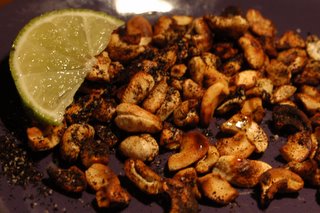 Pan roasted cashews, dusted with kosher salt, black pepper, chili
